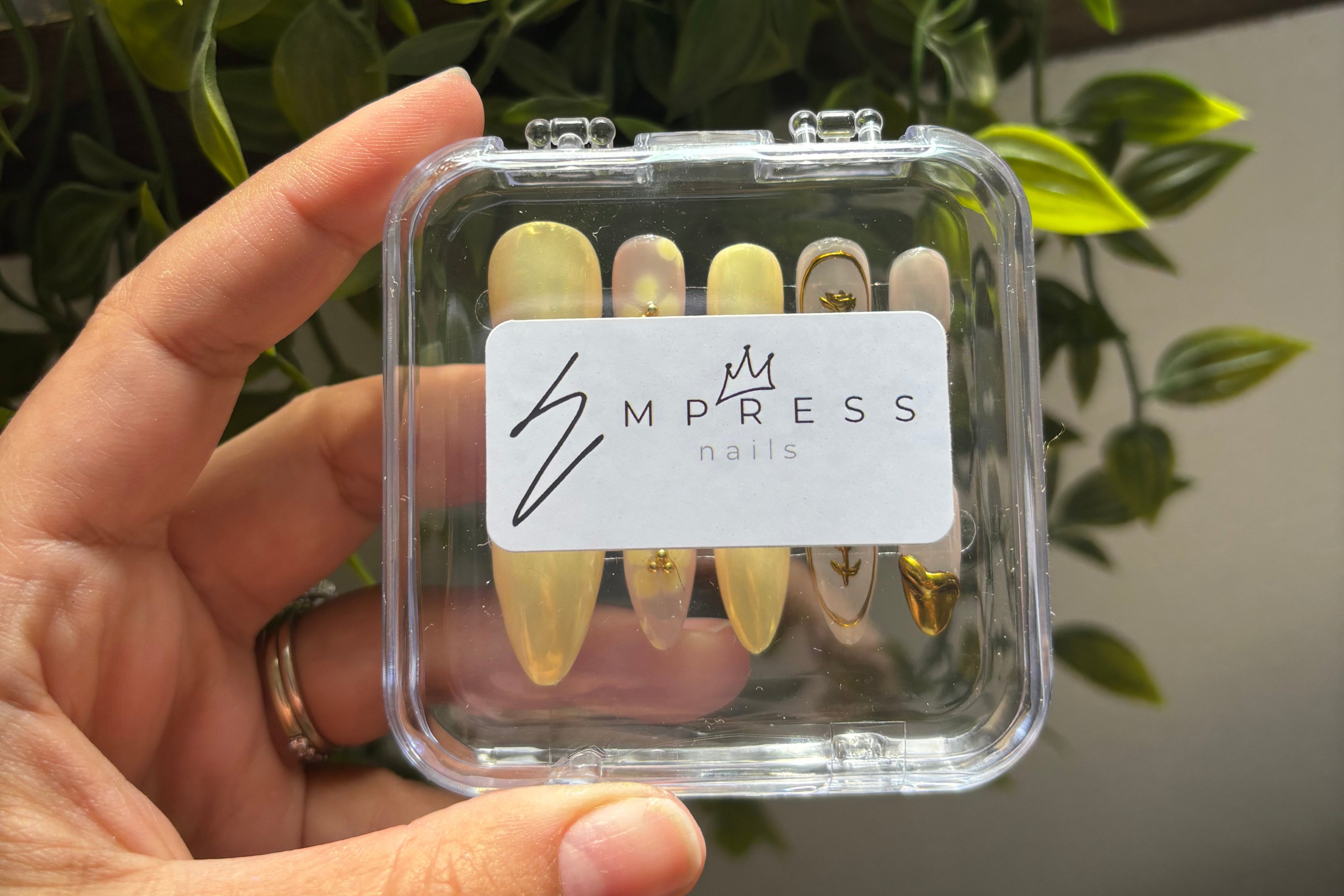 Empress nails are hand-painted press-ons perfect for any occasion. I can’t wait to make you your first set! <3