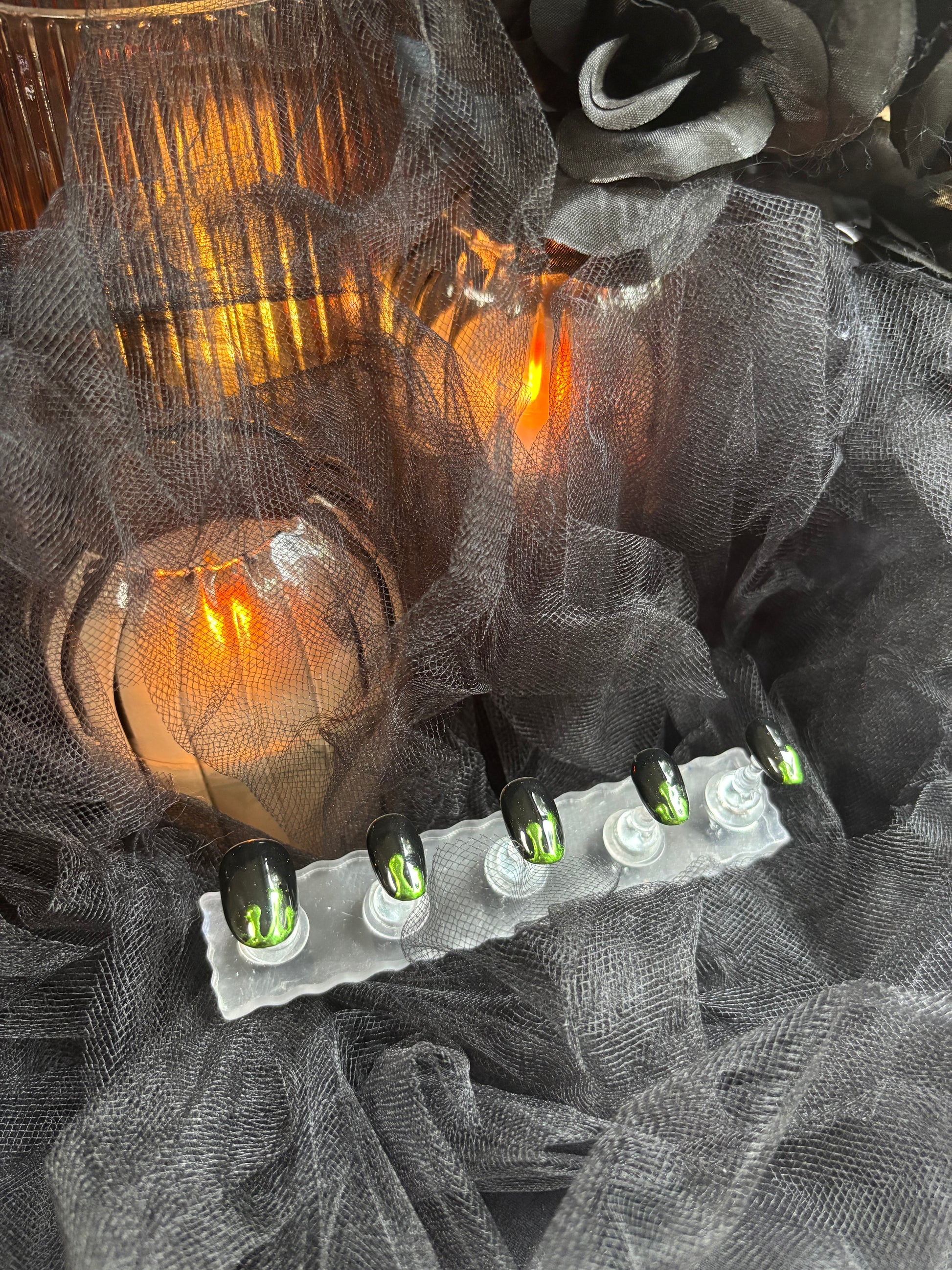 Remember Shego from Kim Possible? This set channels her vibe with the all black base and green chrome goo!